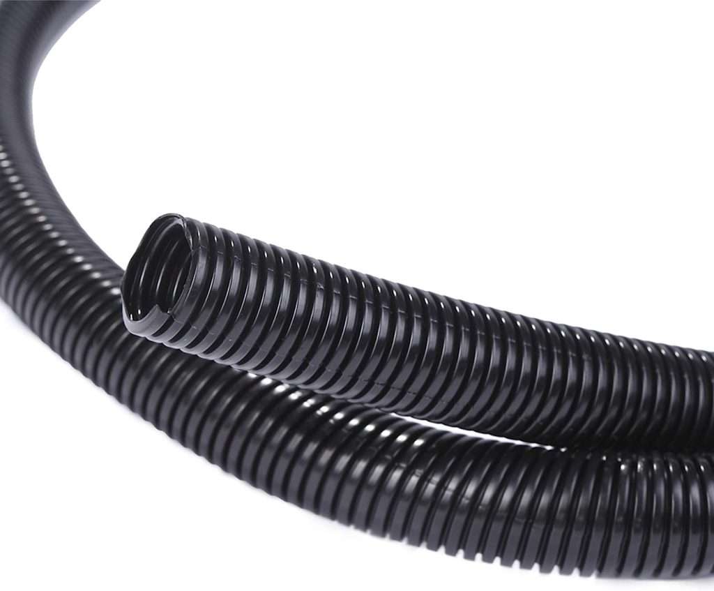 To provide additional protection for the positive power cable, I fed it through 15′ of 3/4″ split wire loom, which fit the beefy 1/0 welding cable with little room to spare.