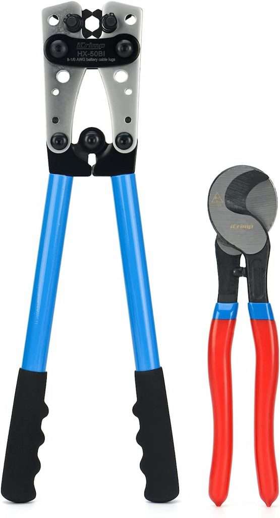 After the parts had arrived, I crimped the ring terminals onto the winch-end of the 15′ lengths of welding cable, and installed the heat-shrink tubing.